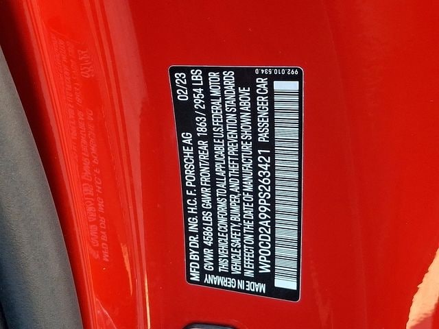 Certified. Guards Red 2023 Porsche 911 Turbo S AWD 8-Speed Porsche Doppelkupplung (PDK) 3.8L H6 Turbocharged DOHC 24V LEV3-ULEV70 572hp 911 Turbo S, 2D Cabriolet, 3.8L H6 Turbocharged DOHC 24V LEV3-ULEV70 572hp, 8-Speed Porsche Doppelkupplung (PDK), AWD, ABS brakes, Alloy wheels, Electronic Stability Control, Front dual zone A/C, Heated door mirrors, Heated front seats, Illuminated entry, Low tire pressure warning, Navigation System, Porsche Communication Management, Remote keyless entry, Traction control.
