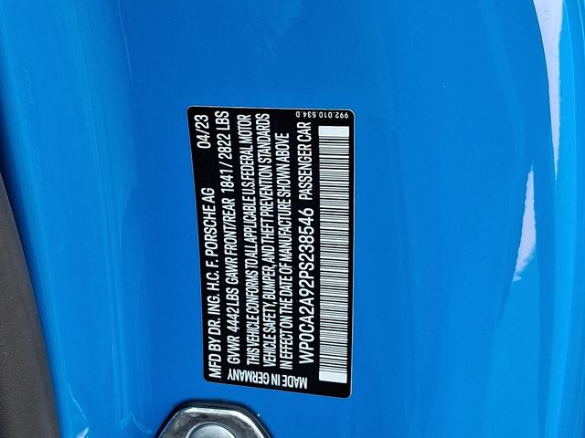Certified. Shark Blue 2023 Porsche 911 Carrera 8-Speed Porsche Doppelkupplung (PDK) 3.0L H6 Turbocharged DOHC 24V LEV3-ULEV70 379hp 911 Carrera, 2D Cabriolet, 3.0L H6 Turbocharged DOHC 24V LEV3-ULEV70 379hp, 8-Speed Porsche Doppelkupplung (PDK), Shark Blue, Mojave Beige/Black w/Leather Seat Trim w/Two-Tone Interior, ABS brakes, Alloy wheels, Electronic Stability Control, Front dual zone A/C, Heated door mirrors, Heated front seats, Illuminated entry, Leather Seat Trim, Low tire pressure warning, Navigation System, Porsche Communication Management, Remote keyless entry, Traction control.