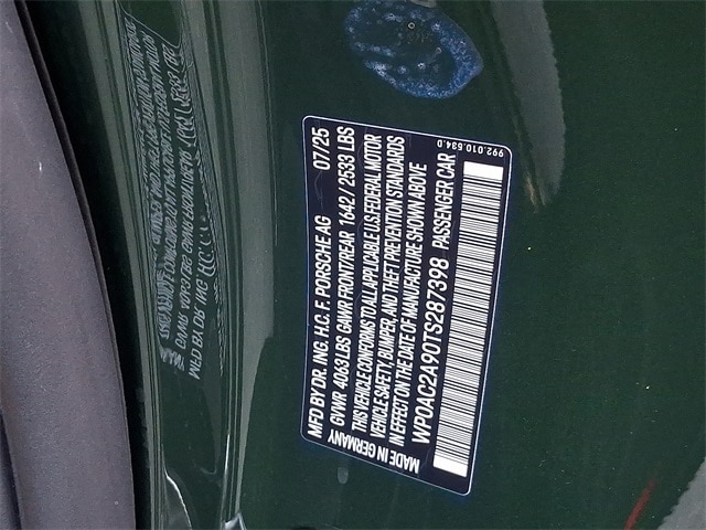 Certified. Oak Green Metallic Neo 2026 Porsche 911 GT3 RWD 6-Speed Manual 4.0L H6 DOHC 24V LEV3-LEV160 502hp CALL US DIRECTLY AT 610-279-4100, PORSCHE CERTIFIED, CLEAN CARFAX NO ACCIDENTS, TWO KEYS, NAVIGATION, LEATHER SEATS, BACK UP CAMERA, BLUETOOTH STREAMING, 911 GT3, 2D Coupe, 4.0L H6 DOHC 24V LEV3-LEV160 502hp, 6-Speed Manual, RWD, Oak Green Metallic Neo, Black w/Leather/Fabric Seat Trim, BOSE Surround Sound System, Chrono Package w/Porsche Design GT Clock, Exclusive Design Taillights, Extended Dashboard & Door Panel Package in Leather, Extended Range 23.7 Gallon Fuel Tank, Folding Lightweight Bucket Seats, Front Axle Lift System, HD-Matrix Design LED Headlights in Black, Illuminated Door-Sill Guards in Matte Carbon Fiber, Ionizer, Lightweight Package Exterior in Black, ParkAssist Rear, Porsche Ceramic Composite Brakes (PCCB) (1LQ), Rear Seats, Smoking Package, Sound Package Plus, Wheels: 20" Fr/21" Rr 911 GT3 Forged Magnesium.