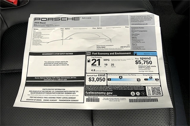 Carrara White Metallic 2025 Porsche Macan AWD 7-Speed Porsche Doppelkupplung (PDK) 2.0L I4 Turbocharged
